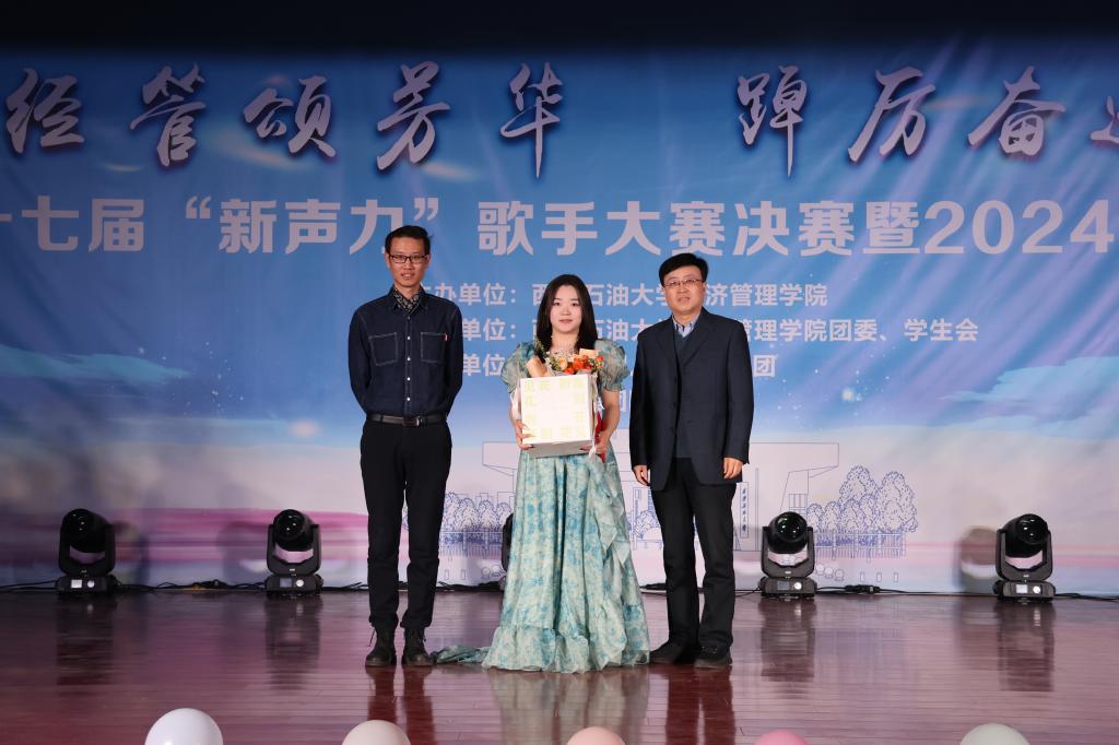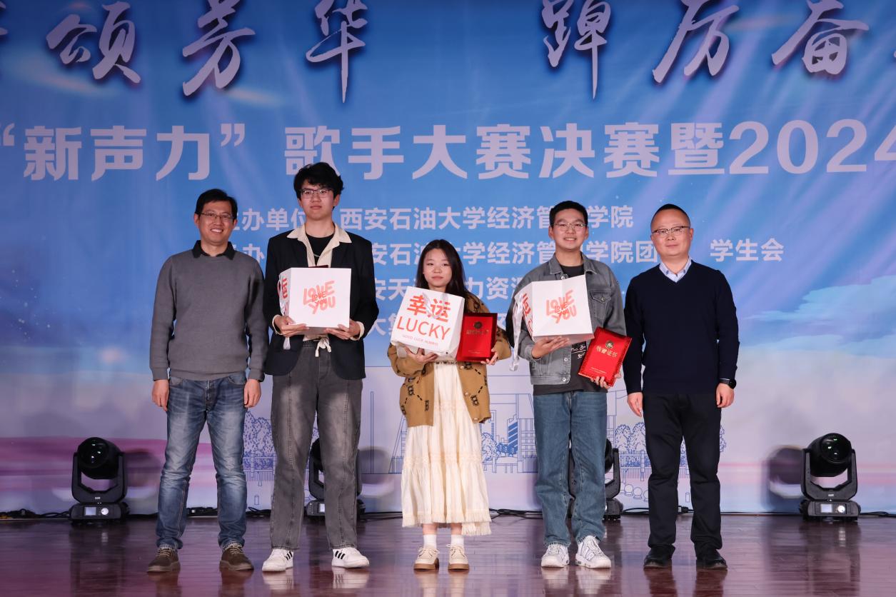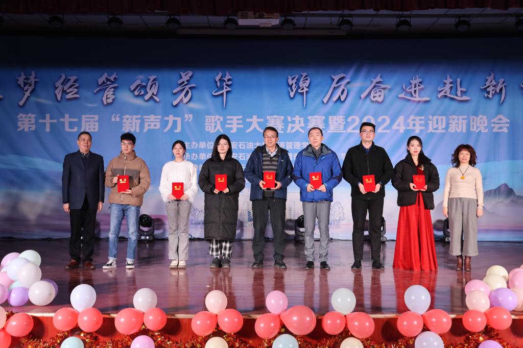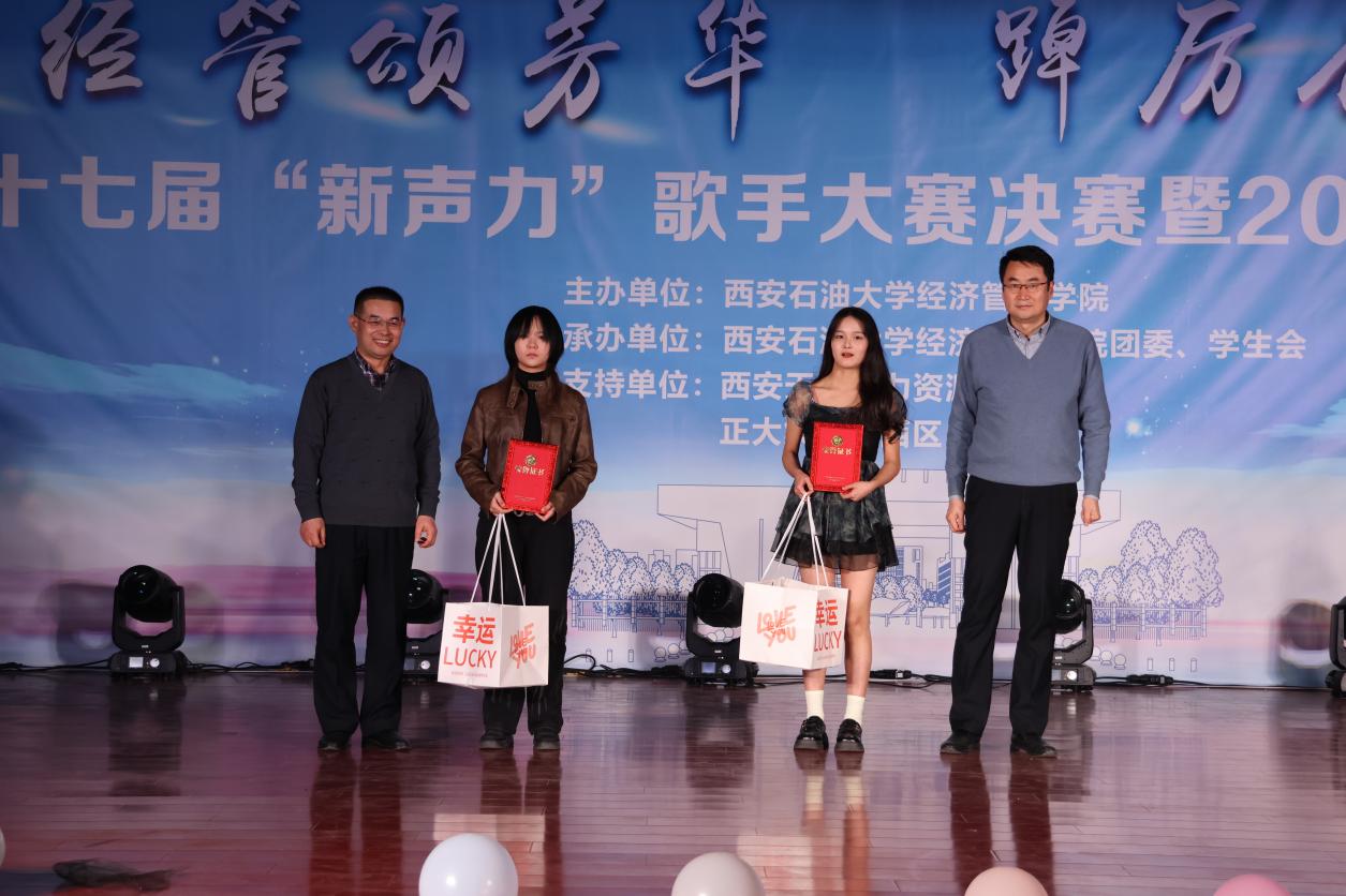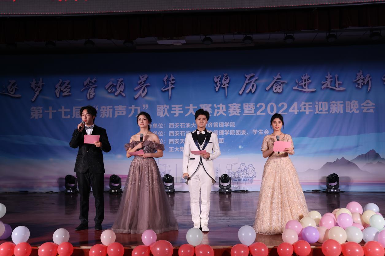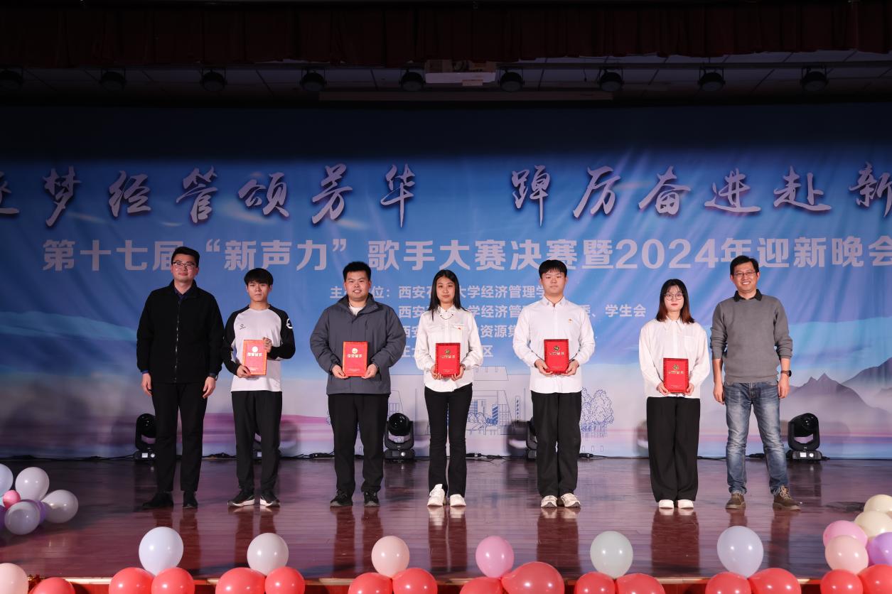 12月27日,经济管理学院第十七届“新声力”歌手大赛决赛暨2024年迎新晚会在我校鄠邑校区腾辉大学生活动中心成功举办。晚会支持单位代表、天润人力集团高级合伙人、陕西天润德凯信息技术有限公司总经理、经济管理学院2012届人力资源管理专业毕业生徐超应邀出席。校党委副书记、纪委书记王辉强,总会计师樊晓民出席晚会并颁奖。党政办公室(鄠邑校区管理办公室)、统战部、学生工作部、校团委、计算机学院负责人,经济管理学院党政负责同志、各教工党支部书记、各系办主任和师生代表500余人参加晚会。