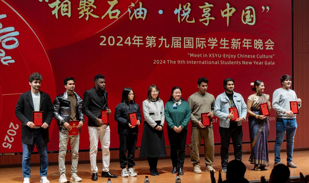 12月29日晚,由国际教育学院组织的“相聚石油・悦享中国”2024年第九届国际学生新年晚会在鄠邑校区弘石学术报告厅成功举办。校党委副书记张木、副校长程永清出席晚会,程永清致新年贺词。西安市公安局出入境管理局、鄠邑区沣京路派出所等嘉宾,我校党政办公室(鄠邑校区管理办公室)、研究生工作部、教师工作部、计算机学院、国际教育学院等部门和院(系)负责人,以及200余名国际学生欢聚一堂,共赏国际文化盛宴。