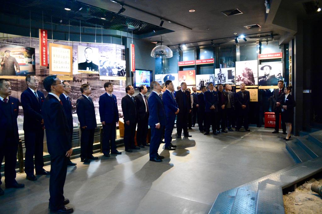 随后,常江、王进富等来到校史馆,重温老一辈无产阶级革命家对学校的亲切关怀,回顾筚路蓝缕、开拓进取的建校办学历史。在校史馆上半展区,展示了在习仲勋等老一辈无产阶级革命家关怀下,1951年学校创办的历史。秉承“艰苦创业、兴油报国”的办学理念,学校坚定起步,砥砺前行。50年代末,学校开启本科办学历程,广大师生不辱使命、励精图治,各项事业取得了较快发展。即使在学校遭受重创、停办改厂期间,依然坚持科技攻关,产生了一批科学研究和技术攻关成果。80年代初,学校弦歌复响、绛帐重开,迈入新的发展时期,并凝练形成了“团结、勤奋、求是、创新”八字校风。全体同志透过一个个展板、一件件历史实物,深刻感悟学校厚重的历史积淀、沧桑的办学历程,深切体会前辈们办学兴教的不易。厚重的历史提醒全体同志不忘来时道路的艰辛,务必牢记初心使命、赓续红色血脉。