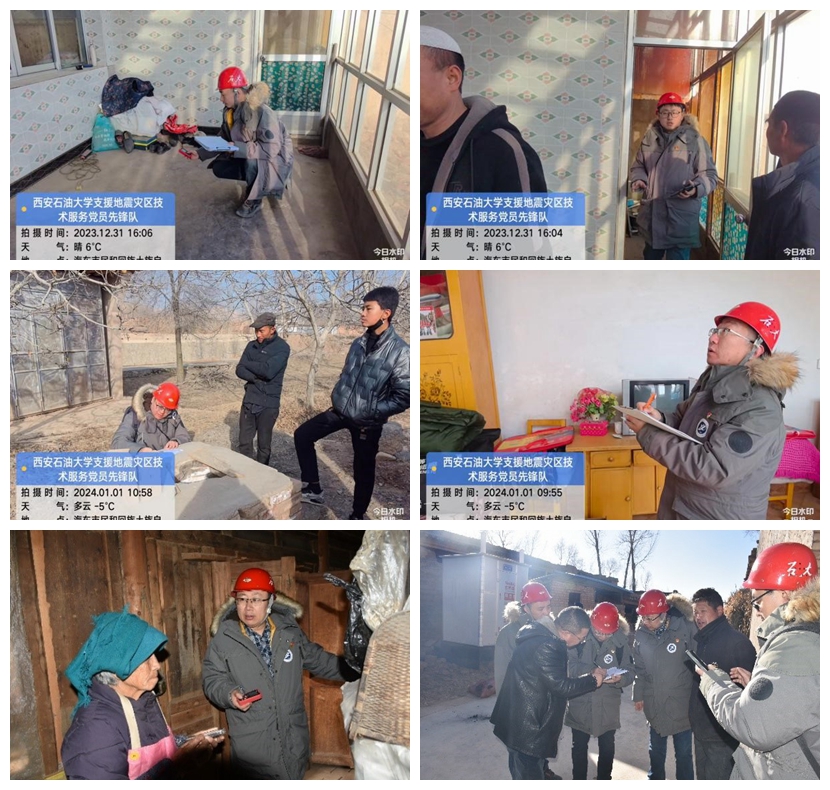 先锋队本次前往地震灾区的主要工作任务是对受灾地区村民房屋的安全性进行鉴定。先锋队一行于12月29日晚抵达青海省民和回族土族自治县。在驻地,先锋队学习了青海省住建厅发布的《甘肃积石山县6.2级地震青海灾区受损房屋建筑及市政基础设施安全鉴定工作方案》《地震受损房屋安全鉴定工作手册》等本次抗震救灾技术文件。同时,先锋队积极对接当地抗震救灾指挥部,约定第二天上午见面并对接具体任务。12月30日清晨,青海省住建厅领导在抗震救灾指挥部接见先锋队一行。先锋队代表西安石油大学表明来意,介绍了人员配置、技术力量等情况,随即申领具体任务,部署开展相关工作。