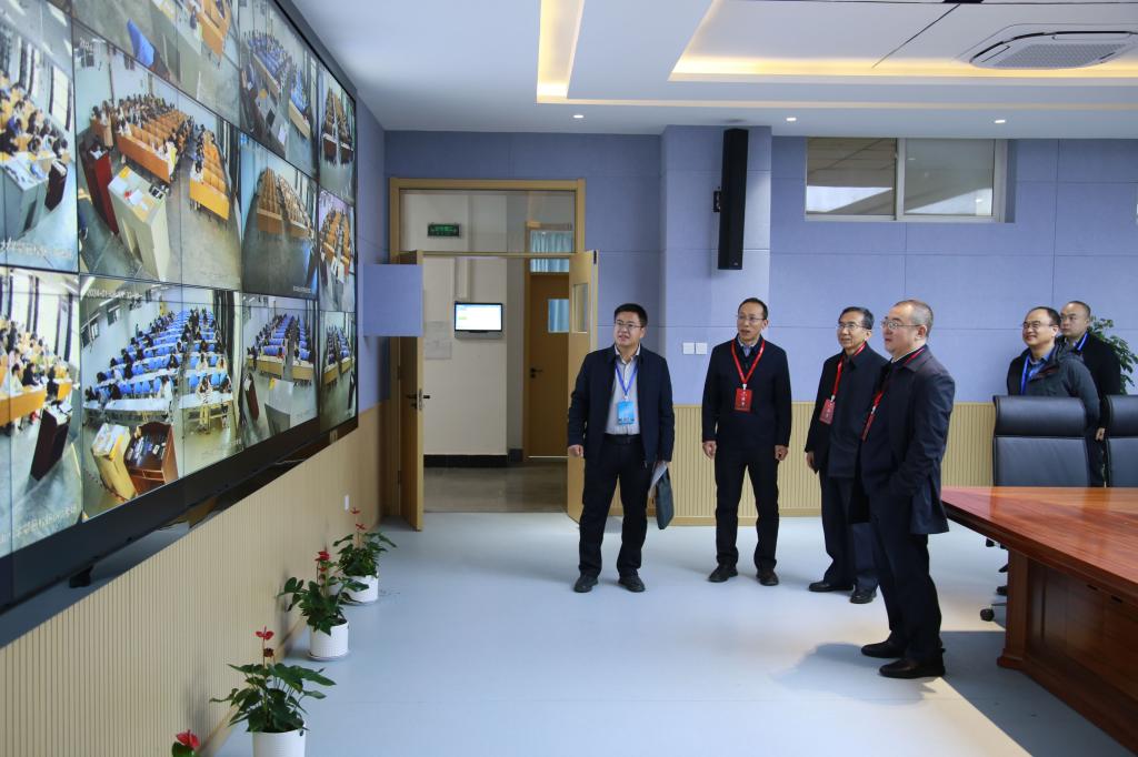 9日上午,校长王进富,副校长杨战社、苏文甫通过在博览楼可视化中心查看各考场实时监控画面,了解考试具体安排。在巡视考场期间,各考生全神贯注、认真答题,展现出了良好的考风。监考教师细致完成各项考务工作,严格监督考场纪律,体现出高度负责的工作作风。