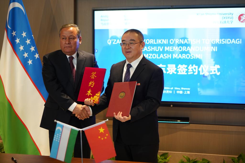1月10日下午,校党委书记常江在上海与来华访问的乌兹别克斯坦安集延州州长阿卜杜拉赫马诺夫·舒赫拉特贝克·科沙克博耶维奇(Abdurahmanov Shuhratbek Koshaqboevich)一行会见,并签署合作备忘录。乌兹别克斯坦安集延州州政府、波士顿区政府、乌兹别克斯坦驻华大使馆投资工业与贸易部、商务参赞等乌方官员,以及我校国际交流与合作处、石油工程学院、地球科学与工程学院、化学化工学院、经济管理学院、国际教育学院等部门和学院负责人参加会见。