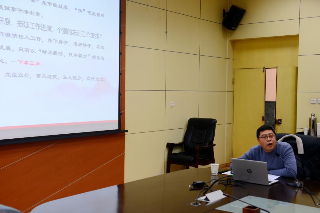 会前,教务处邀请马克思主义学院党总支书记张伟作了题为《弘扬铁人精神 践行优良作风》的专题报告,报告从铁人简介谈起,并从铁人精神内涵、作风建设重要意义、践行优良作风三个方面全面阐述。报告内涵丰富、目标明确,对本科教育教学工作起到一定的实践指导意义。