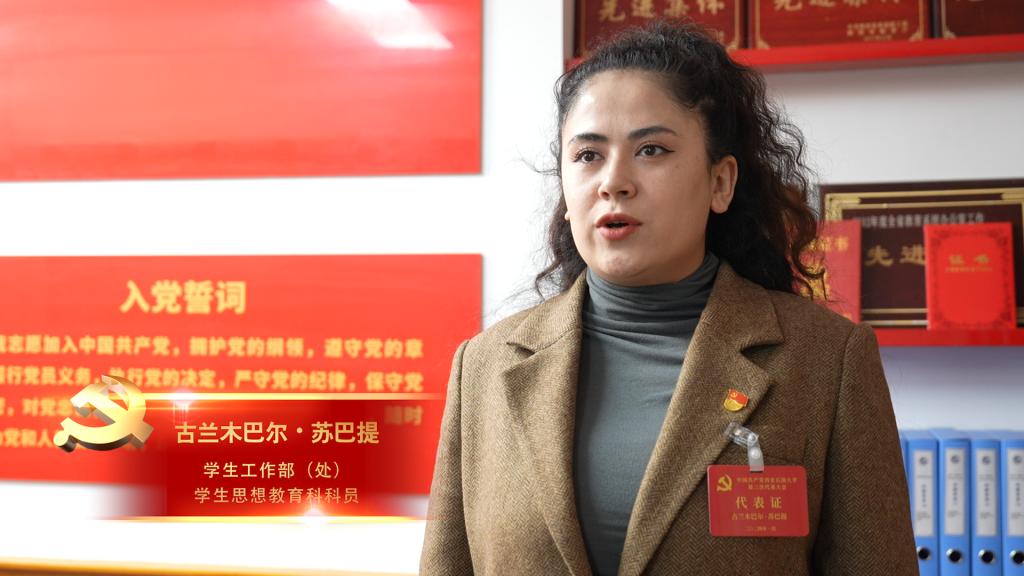 报告提出,加强新形势下民族宗教工作,坚决抵御和防范校园传教渗透。“报告更加明确了我校民族宗教工作的方向和重点。在新时代背景下,要始终坚持党的民族宗教政策,深化民族团结进步教育,把铸牢中华民族共同体意识贯穿于教育教学全过程。”少数民族代表、学生工作部(处)学生思想教育科科员古兰木巴尔•苏巴提说,“可以通过丰富多彩的文化交流活动,鼓励和支持少数民族学生发挥自身优势,展现民族文化魅力,提升自我价值,让民族团结的种子在学生心中生根发芽。”