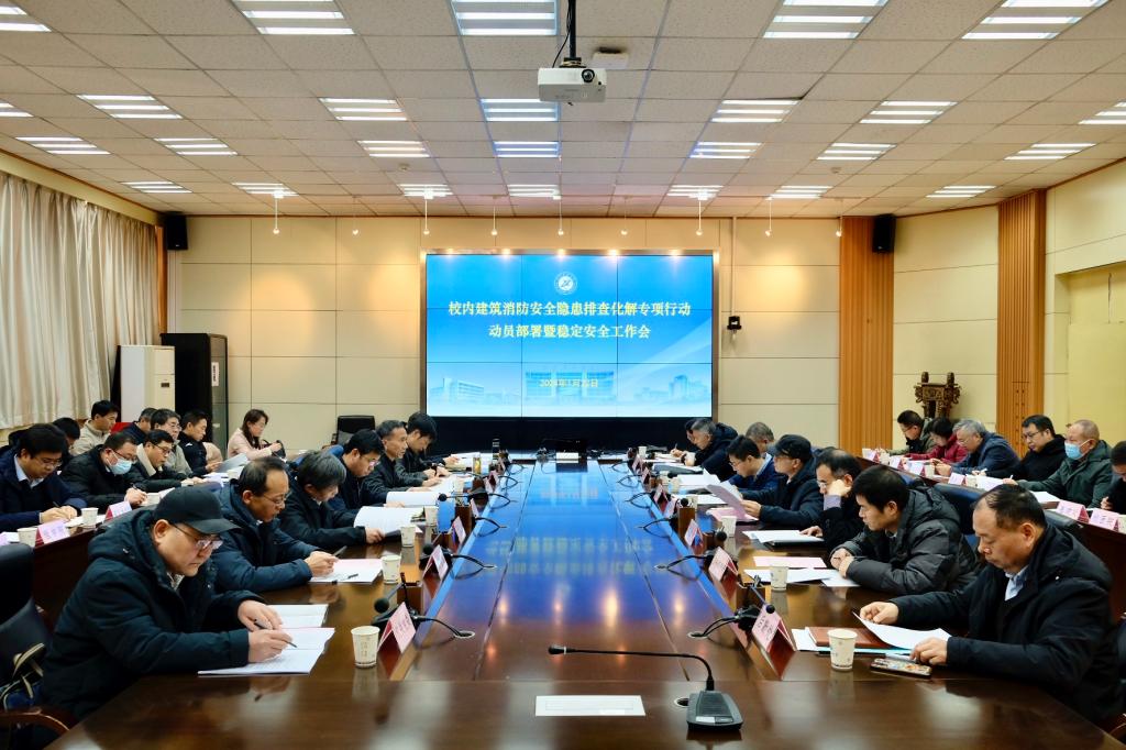 1月22日下午,我校在雁塔校区会议中心第二会议室召开了校内建筑消防安全隐患排查化解专项行动动员部署暨稳定安全工作会。校长王进富,副校长杨战社、苏文甫、张君涛、张骁勇出席会议,相关职能部门负责人和机关党委书记、各院系党组织书记或院长(主任)参加了会议。会议由校党委副书记张木主持。