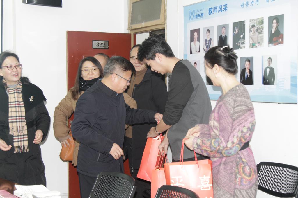 张骁勇一行先后来到雁塔校区东门值班岗、音乐系、校医院、后勤服务大厅等部分值守岗位,每到一处,张骁勇都与大家亲切握手、互致问候,并送上慰问品,表达节日祝福。张骁勇代表学校对值守人员在春节期间舍小家顾大家,坚守工作岗位表示由衷地感谢。同时,他强调相关单位在春节值守期间,要强化责任意识,确保春节期间校园安全稳定和正常运转。