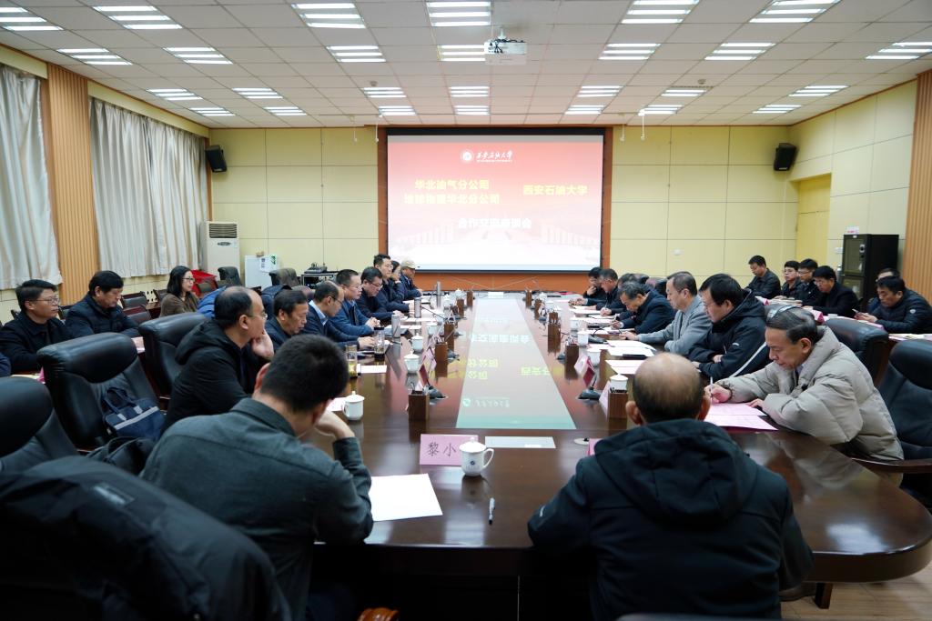 何发岐对我校的热情接待表示感谢。他谈到,中石化华北油气分公司发展历史悠久,是一家集石油天然气勘探开发、工程施工、科研服务和油气销售为一体的大型国有企业,拥有丰富的经验和先进的技术。西安石油大学专业门类齐全,基础研究深厚,期待双方能够在鄂尔多斯盆地的勘探与开发、黄河流域生态环境保护等多领域加强交流与合作,为我国石油工业的发展作出更大的贡献。