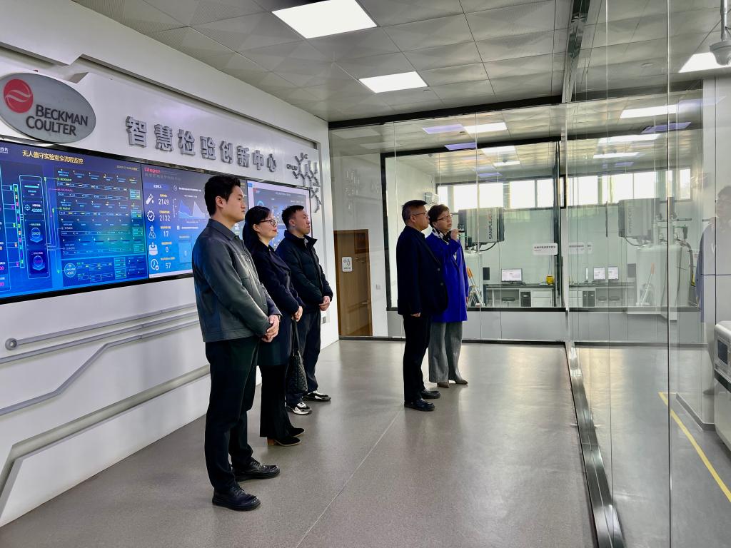 张骁勇一行实地参观了智慧化无人值守智慧化检验实验室、临床分子实验室、微生物及药敏实验室、质量安全管理部和与三桥社区卫生服务中心合作共建实验室,了解了全国首个拥有无人值守全自动检验流水线的医学检验实验室在充分运用“互联网+”技术搭建人工智能平台,实现送检标本从分拣、检验、审核到存储、复检的全流程智慧化运行情况。座谈环节,张骁勇向西安区域医学检验中心简要介绍了学校基本情况、医疗工作现状以及发展愿景。张晓勇提到今年是我校贯彻落实学校第三次党代会的开局之年,开启了学校各项事业高质量发展的新征程,做好医疗等重要民生工程,构建以人为本、可持续发展的一流保障体系是学校高质量发展的基础,希望通过双方进一步深化合作,推动优质检验资源下沉扩容,发挥西安医检体系优势和平台作用,为我校广大师生提供便捷、精确的医学检验服务。