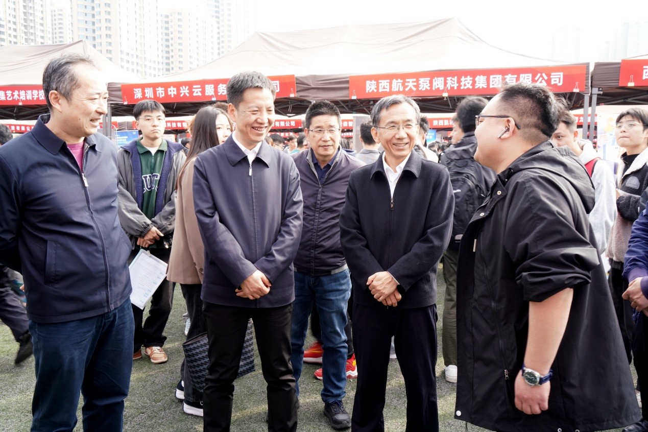 申雪峰一行深入招聘会现场,认真听取了我校关于招聘会筹备、现场组织、安保以及会议服务的情况汇报,了解了企业招聘需求,现场与毕业生、二级院(系)学生工作主要负责人、我校就业工作负责人、现场推介毕业生的专任教师及毕业班辅导员进行了交流。他鼓励毕业生要志存高远,积极进取,脚踏实地,将个人理想追求融入国家社会发展需要中去。建议用人单位要不拘一格降人才,既要承担好企业的社会责任,为毕业生创造好事业发展空间,又要加强校企合作,把企业人才需求和质量及时反馈到学校的人才培养过程中去,破解结构性矛盾,提升人才培养质量,促进供需对接平衡。并就高校做好毕业生就业工作提出几点建议:一是要千方百计促进市场化就业,深入开展访企拓岗促就业行动;二是要健全就业服务体系,强化就业育人实效,深入推进就业育人,切实维护毕业生就业权益;三是要聚焦重点群体,健全就业帮扶机制,用心用情做好就业困难群体帮扶。