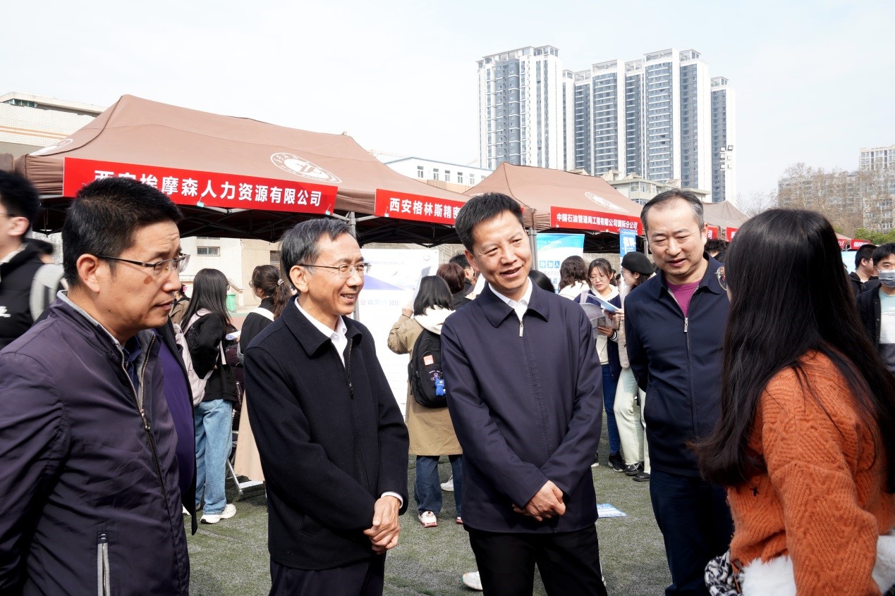 3月15日,由陕西省教育厅主办,陕西省学生就业与留学服务中心和西安石油大学承办的陕西省2024届普通高校能源化工类毕业生春季联盟招聘会在我校雁塔校区成功举办。省委教育工委委员、省教育厅副厅长申雪峰一行来校指导考察招聘工作。会前,申雪峰副厅长与我校党委书记常江、党委副书记张木就2024届毕业生就业工作开展座谈交流。陕西省学生就业与留学服务中心、省教育厅学生处有关负责同志陪同考察。