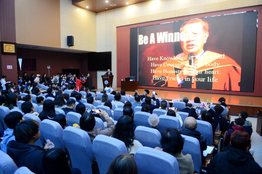 李昌钰博士曾前往40多个国家和地区,侦破案件8000多起,荣获30多个博士头衔。他讲述了自己的求学经历和奋斗历程,以亲身经历鼓励同学们要找到自己的人生目标,积累专业知识与技能,坚定地在求学之路上前行,迎难而上,知其不可为但要努力为之,为自己的未来创造更多可能。他提醒正值青春岁月的莘莘学子,求学与为祖国服务都要尽自身最大的努力,鼓励同学们“挑战不可能”,能够成为“有梦想与目标的人”。