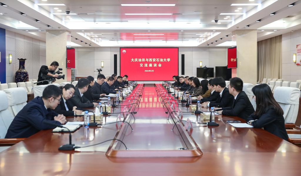 3月20日上午,樊晓民一行与大庆油田有限责任公司总会计师梁宁进行座谈交流。樊晓民代表学校对大庆油田长期以来对学校事业发展的支持表示衷心感谢,并介绍了学校近年来的发展变化和取得的成绩。他特别谈到,1月5日学校胜利召开第三次党代会,提出要锚定“七个目标”,实施“六大行动”,跑出西石大加速度,开启学校事业高质量发展新征程。他表示,我校与大庆油田公司同根同源、同生共长,双方始终保持着良好的合作局面。希望双方持续加强平台共建、资源共享、人才共育等方面的合作与交流,书写新时代校企合作共赢新篇章。梁宁对樊晓民一行的到来表示欢迎,并简要介绍了油田基本情况。他表示,西安石油大学与大庆油田有着深厚的友谊,多年来为油田培育输送了大量专业性人才,在产学研合作、人才培养方面建立了良好的合作关系。今年是习近平总书记致大庆油田贺信5周年,也是“工业学大庆”号召提出60周年,大庆油田将一如既往支持学校的发展,希望双方发挥各自优势,不断拓宽合作方式和领域,共同为保障国家能源安全作出更大贡献。