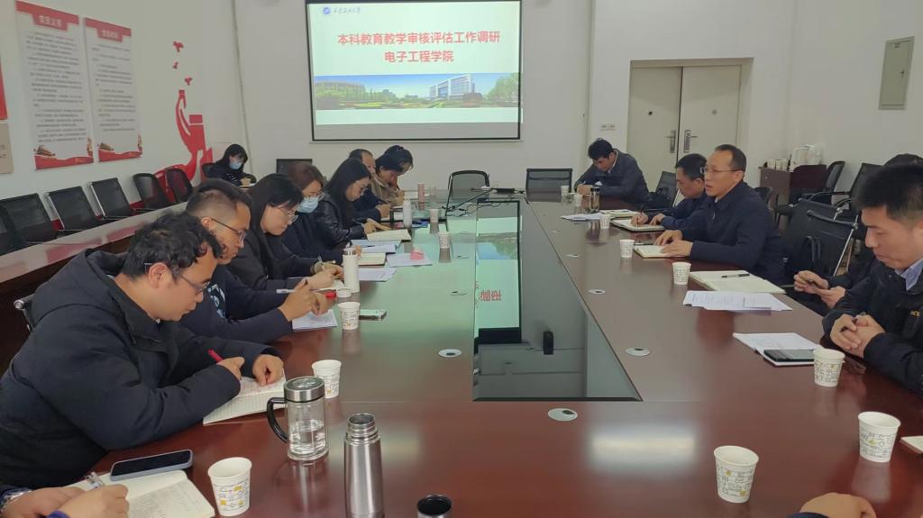 张君涛从院(系)自评自建、审核评估宣传、教育教学思想大讨论、人才培养方案修订、教师教学能力提升、学风建设和教学管理制度建设等八个方面进行调研。在调研期间,听取各院(系)本科教育教学审核评估工作进展情况汇报、审核评估院(系)汇报,调阅教学大纲,检查教学资料归档情况,与院(系)参会人员座谈等多种方式对各院(系)审核评估“评建改”开展全方位调研和工作指导。