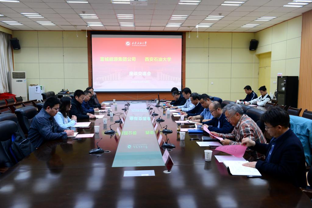 4月10日上午,克拉玛依市富城能源集团公司党委书记、董事长康永健带队来我校进行校企合作交流。合作交流会在雁塔校区会议中心第一会议室召开,我校党委副书记张木,富城能源集团公司党委副书记、总经理林军出席会议。合作发展处处长覃彪主持会议。