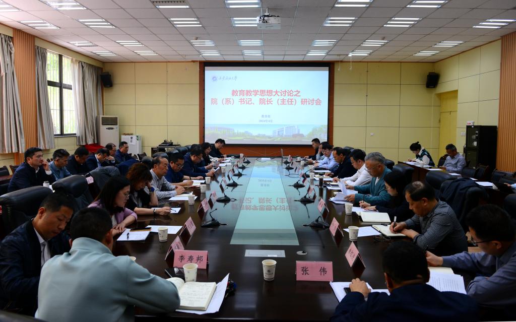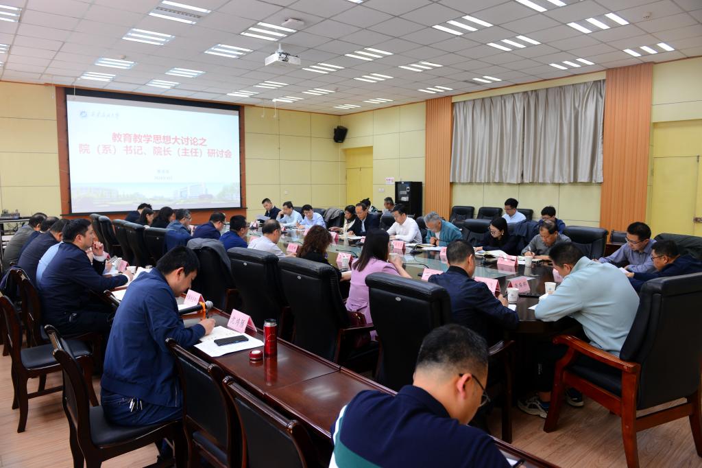 各院(系)书记、院长(主任)围绕本科教育教学的目标与定位、“立德树人”根本任务、专业建设,教学改革、学生能力培养与评价、教师队伍建设、教风与学风建设等内容,结合自己学院(系)的工作,从“怎么想、怎么看、怎么干”三方面进行了深入的探讨和交流。