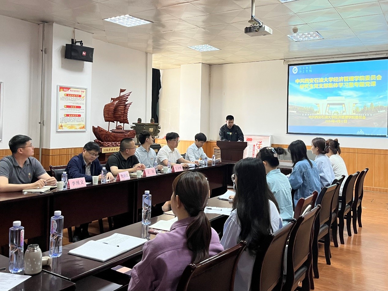 4月12日,经济管理学院2022级学硕党支部在雁塔校区东方石油楼1507会议室召开支部党员大会,总会计师樊晓民以普通党员身份参加支部学习,与支部党员同志一起交流,并讲授专题党课。