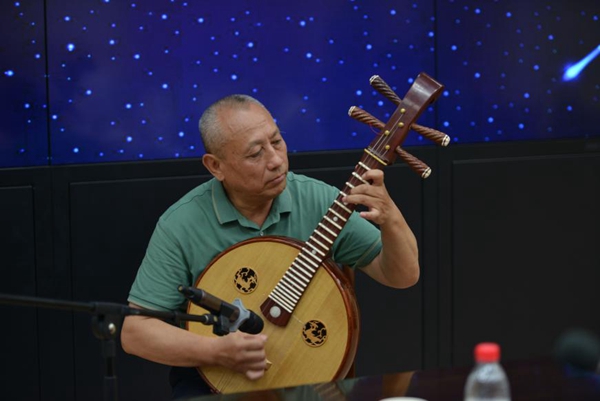 之后,著名文化学者、非遗音乐家、我校创新创业非遗文化导师李铠先生作了题为《丝路非遗“长安古乐”的前世今生》的主题分享。李先生首先祝贺我校创新创业工作取得的成就,也表示作为我校创新创业非遗文化导师将全力支持我校创新创业工作。他讲到发源于2000多年前的长安古乐是音乐活化石,音乐是很好的交流工具,留学生学习中国音乐会更好地促进他们对中国文化和情感的认同;非遗中的乐器可以作为非遗文化创新的亮点,不断弘扬传统文化,促进国际文化交流!分享结束后,李铠先生使用阮现场弹奏了《南泥湾》和《茉莉花》,以表达对我校继续再造辉煌的美好祝愿。