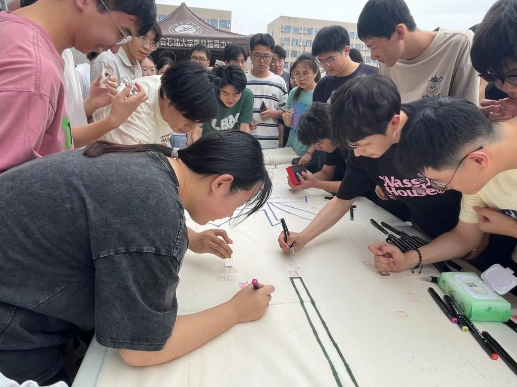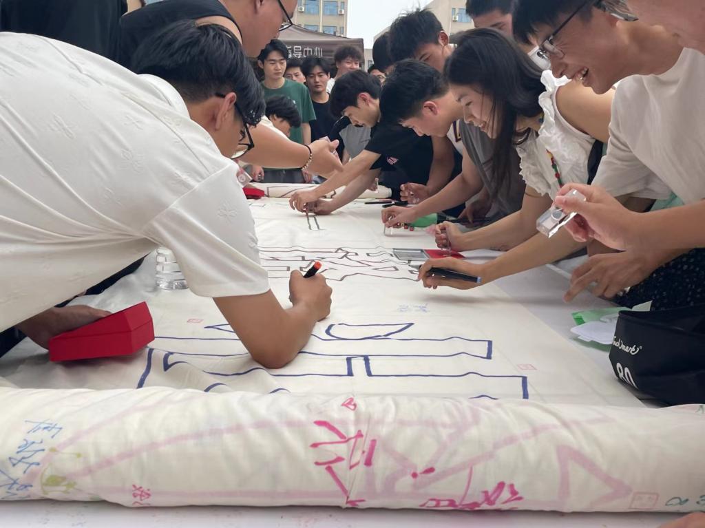 为丰富毕业生校园文化生活,营造温馨和谐的毕业氛围,大力弘扬爱校荣校主旋律,作为2024毕业季系列活动的重要组成部分,6月12日至14日期间,我校开展了“辉煌明天长卷拓印”主题活动,该长卷长55米,宽0.9米,毕业学子纷纷以“印”寄情,在长卷上拓印自己的“一滴油”印章、签下姓名,表达对母校的眷恋,留下临别的印记。