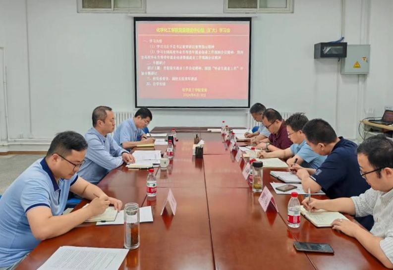 6月18日下午,化学化工学院党委在雁塔校区化学化工学院231会议室召开党委理论学习中心组(扩大)学习会暨就业工作专题研讨会,副校长张荣军全程参加并指导,学院党委委员、理论学习中心组全体成员参加会议。会议由学院党委书记高小明主持。