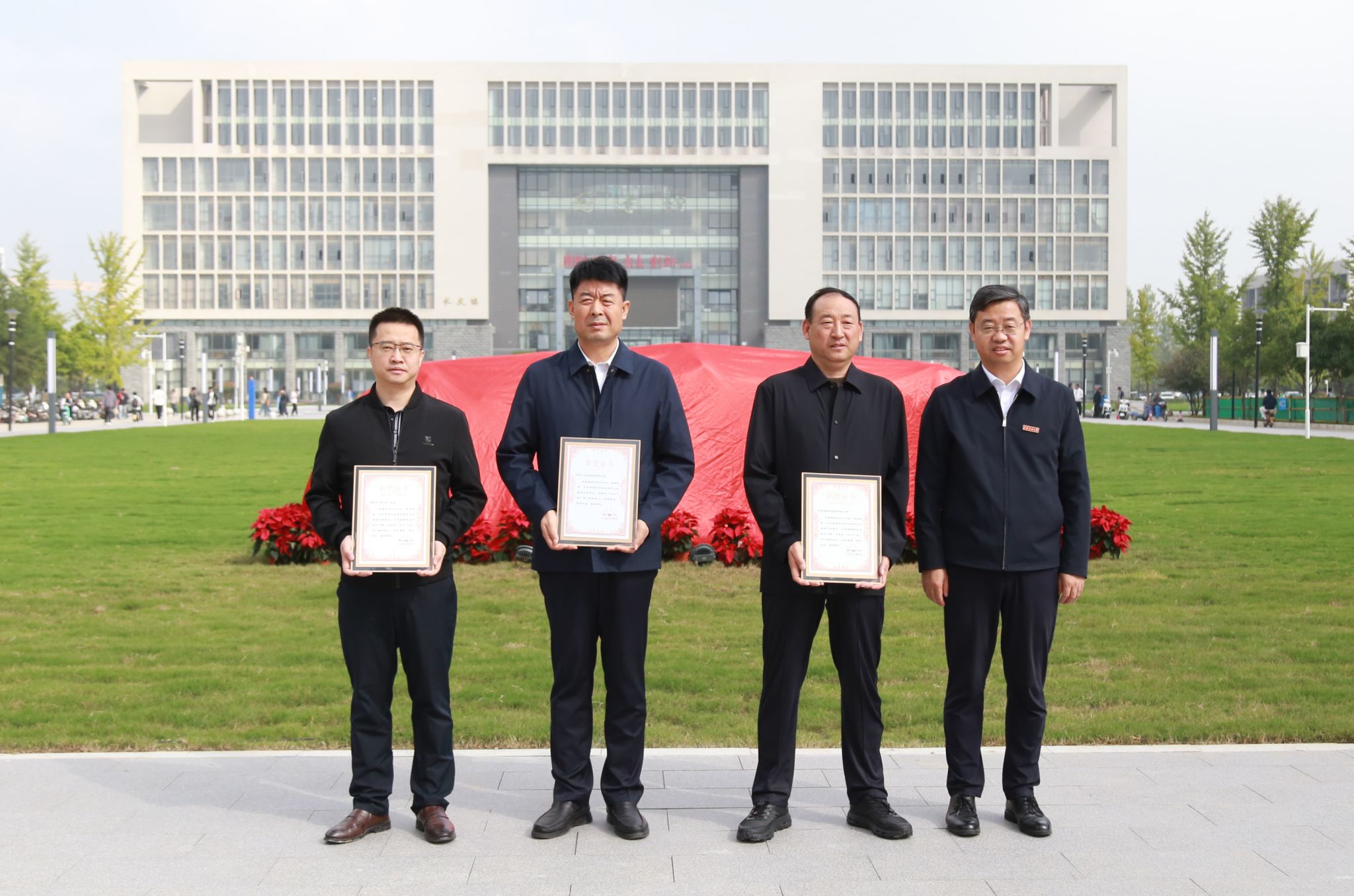 9月25日上午,学校在鄠邑校区图书馆南侧举行初心广场揭幕仪式。杨小平先生个人代表曹青,中铁十五局集团有限公司西北区域总部党委副书记、陕宁指挥部指挥长田胜利,陕西渤瞬新能源有限公司董事长兰喜茗等捐(参)建单位代表,我校校长王进富、校党委副书记程永清、副校长张君涛出席仪式。在鄠邑校区工作的处级干部及学生代表200余人参加活动。仪式由副校长赵健主持。