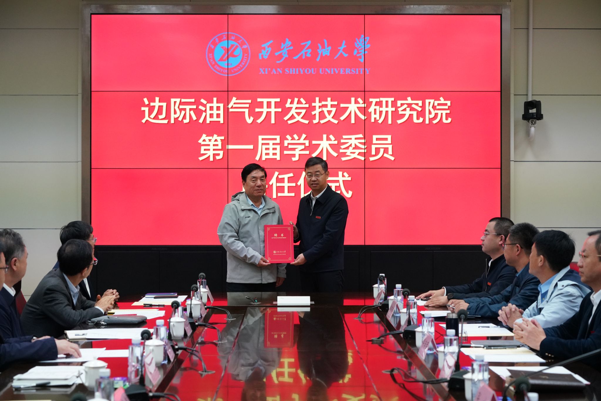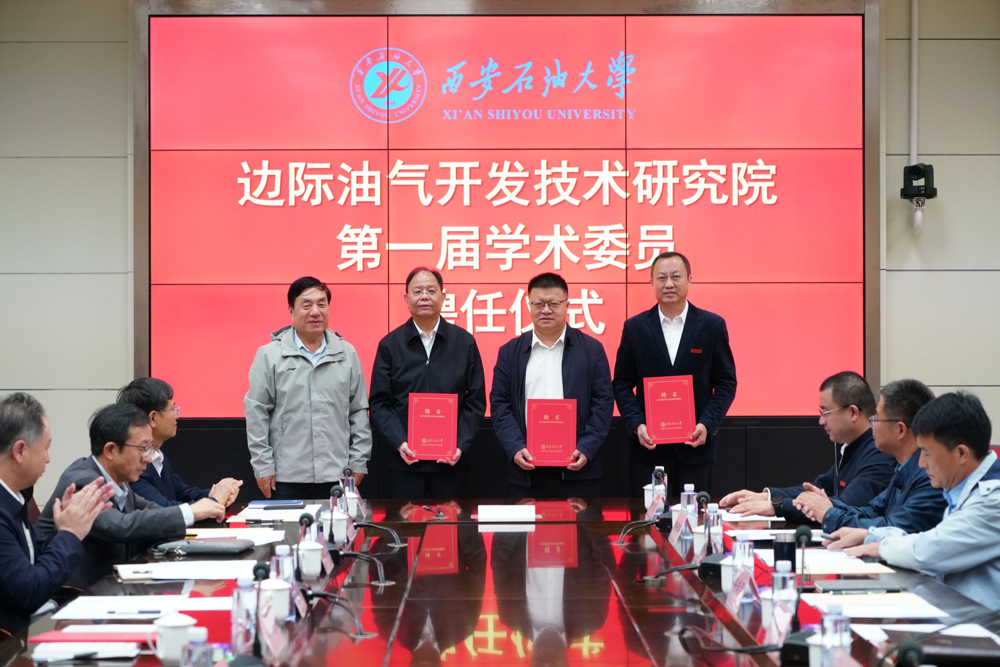 在随后举行的聘任仪式上,张木宣读了《西安石油大学关于聘任第一届边际油气开发技术研究院学术委员会委员的决定》,王进富为李阳院士颁发了学术委员会主任委员聘书,李阳院士依次为各副主任委员、委员及秘书长颁发聘书。现场掌声雷动,气氛热烈。