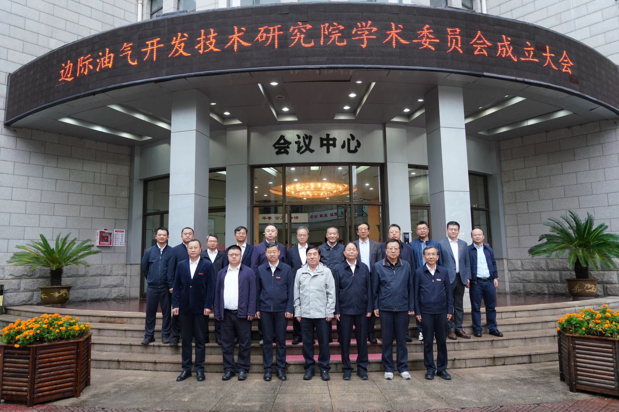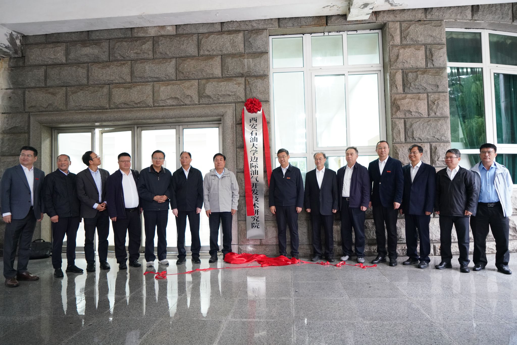 会后,在东阶教学楼前举行边际油气开发技术研究院揭牌仪式,全体与会人员合影留念。随后,与会委员和嘉宾一同参观了研究院实验室。