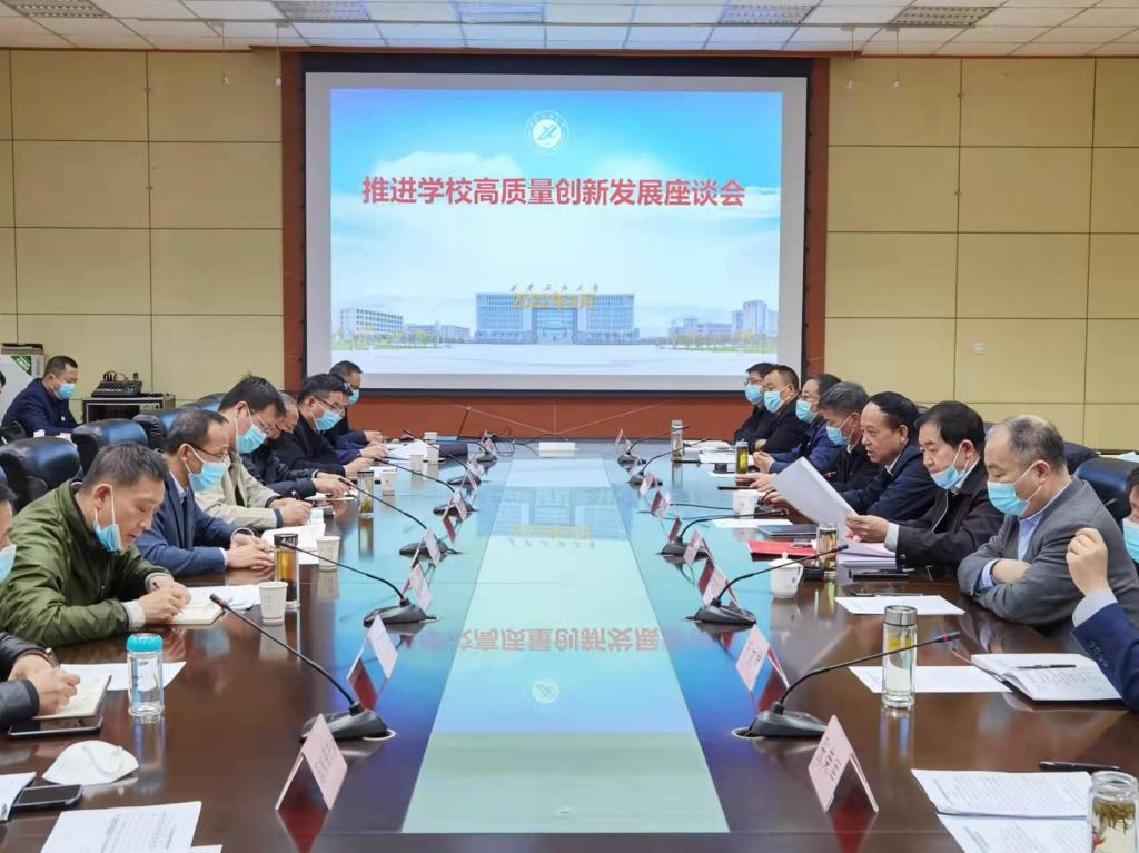 校长李天太在座谈会上指出,“十四五”时期是学校建设发展的关键和重要阶段,在良好的现实机遇、政策机遇面前,全体教职工要有坐不得的紧迫感、慢不得的危机感和等不及的责任感,要立足新时代,适应新形势,坚持特色办学,坚定不移走内涵式发展道路,要坚持目标引领,狠抓工作落实,切实推进学校各项工作高质量发展。一要加大学科发展改革力度,完善学科建设内部治理结构,促进学科交叉融合,优化学科布局;二要加大专业资源保障力度,以OBE理念引领专业发展,深化专业内涵建设;三要加大高层次人才引育力度,优化人才队伍培养体系,建设高水平师资队伍;四要积极创新人才培养模式,深化教育教学改革,推进新工科、新文科建设;五要准确聚焦产业、精准对接企业、深度融入行业,大力加强科技创新和产教融合,切实做到“精准深”;六要坚持改革创新,建立高效流畅的内部管理体制,完善导向鲜明的用人机制,构建向一线倾斜的考核评价体系,讲究统筹兼顾的工作方法,激发全体教职工的内生动力。
