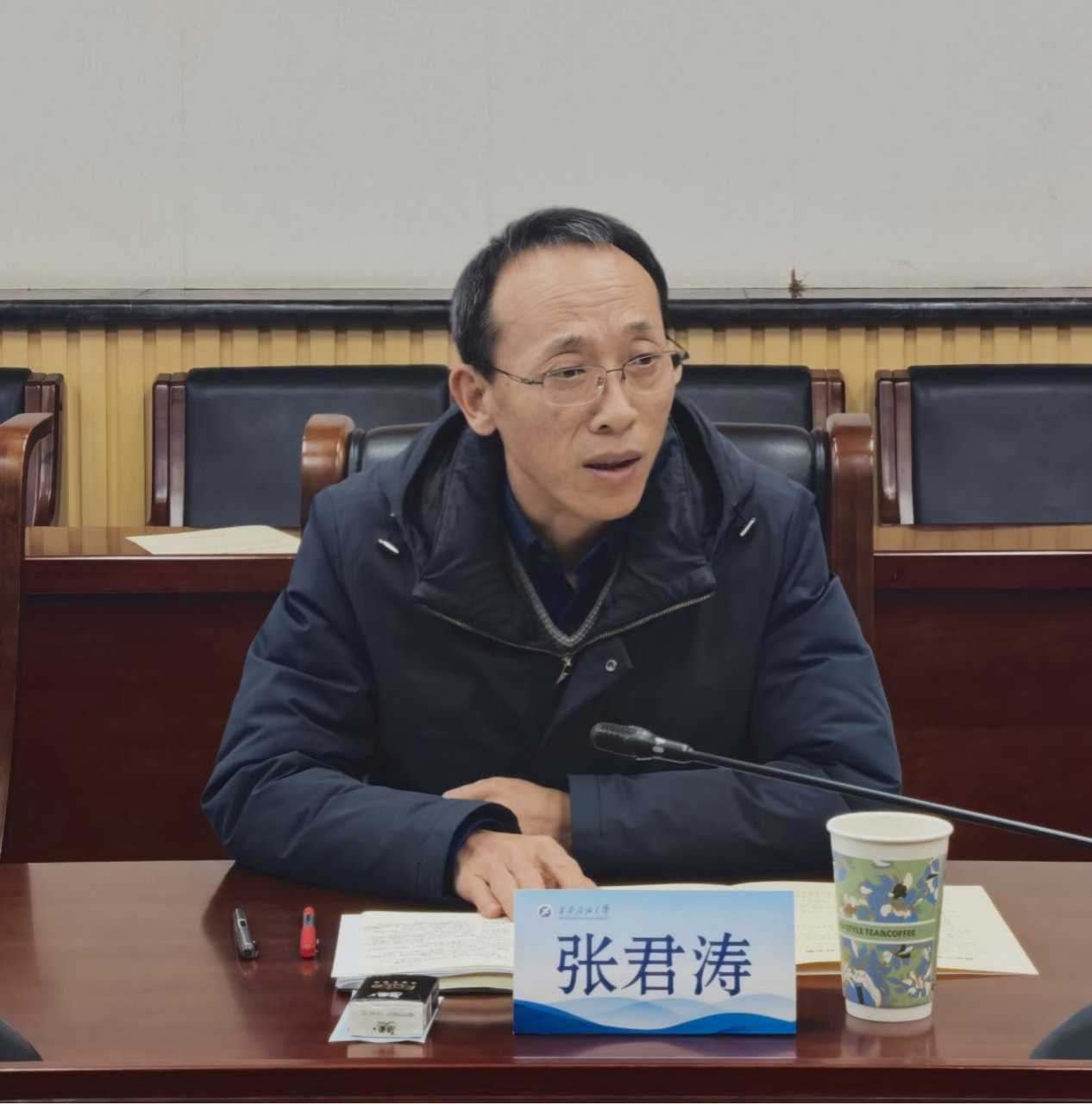 张君涛对同学们的宝贵建议表示肯定,他结合学校的办学特色向青年学生提出四点期望。一是要胸怀理想、服务国家能源战略。要深刻认识能源安全的重要意义,在时代发展中主动作为。二是要增强爱校荣校意识。以主人翁精神参与学校建设,实现与学校共同成长。三是要刻苦学习、夯实基础。关注行业前沿,不断提升自主学习与创新能力。四是要注重全面发展。在文体活动和社会实践中锤炼素质,成长为德智体美劳全面发展的新时代青年。他表示,学校将持续为学生成长成才提供坚实保障,希望同学们以饱满状态投入学习实践,为国家能源安全和民族伟大复兴贡献青春力量。