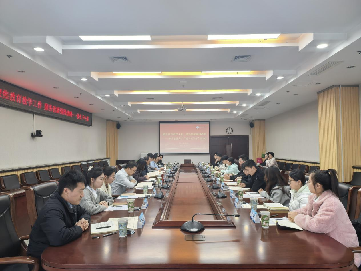 本次活动以“聚焦教育教学工作,服务能源强国战略”为主题,来自各院系的10名本科生代表和9名研究生代表围绕主题、畅所欲言,与老师们共话成长成才。张君涛首先介绍了活动设立初衷,鼓励同学们在轻松的氛围中真实表达意见建议,共同关注学校改革与发展。他表示,学校将坚持开放办学,充分采纳学生意见建议,推动各项举措落地落实。