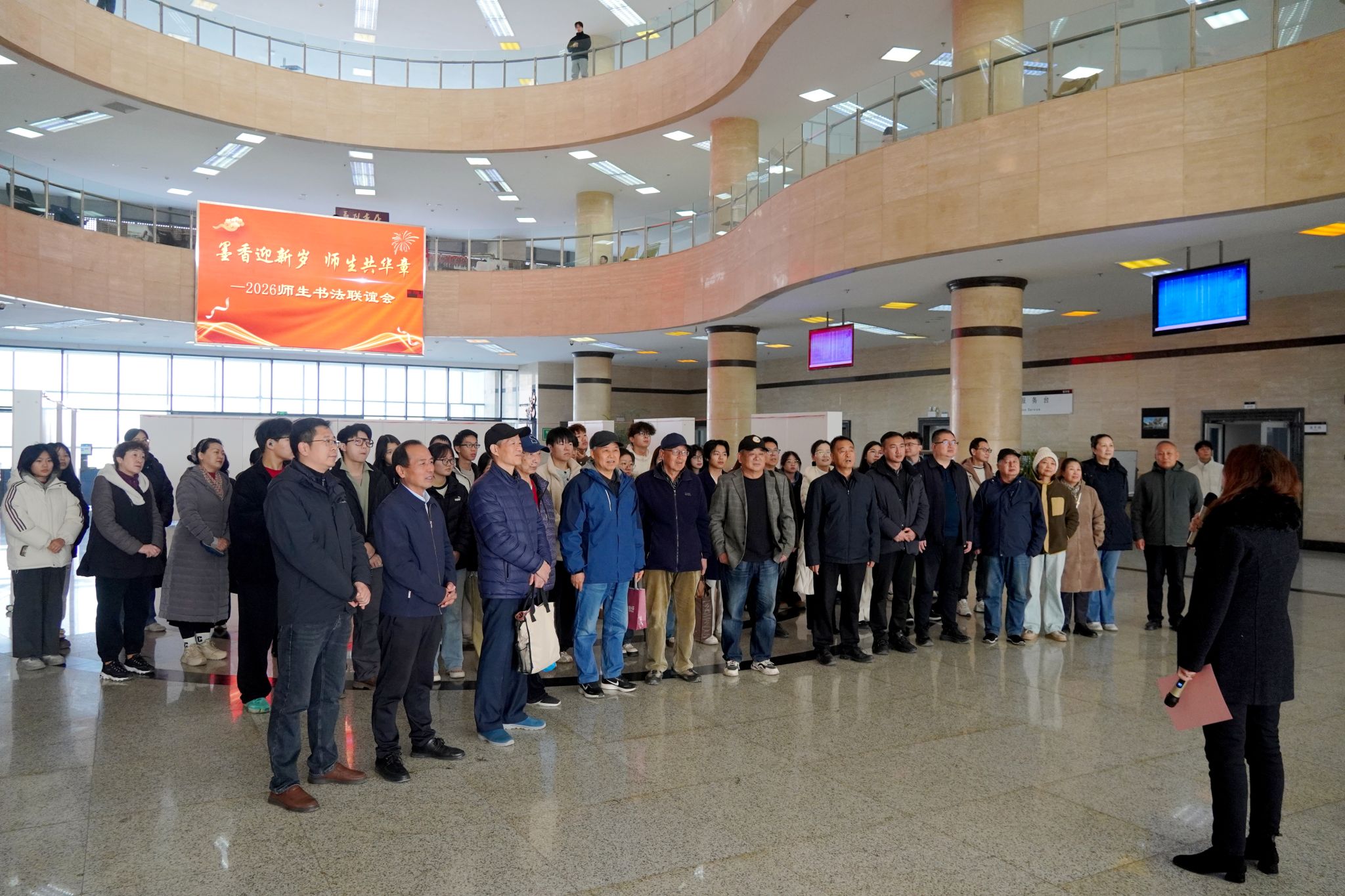 12月18日上午,“墨香迎新岁师生共华章”2026迎元旦师生书法联谊会在鄠邑校区图书馆举行,此次活动由图书馆、离退休工作处、人文学院、大学生书法协会联合举办。校党委副书记程永清出席活动并致辞,相关职能部门和院(系)负责人、校老年书画协会和退休老教师代表应邀出席,我校大学生书画协会全体会员、人文学院学生代表参加了活动,活动由图书馆馆长李涛主持。