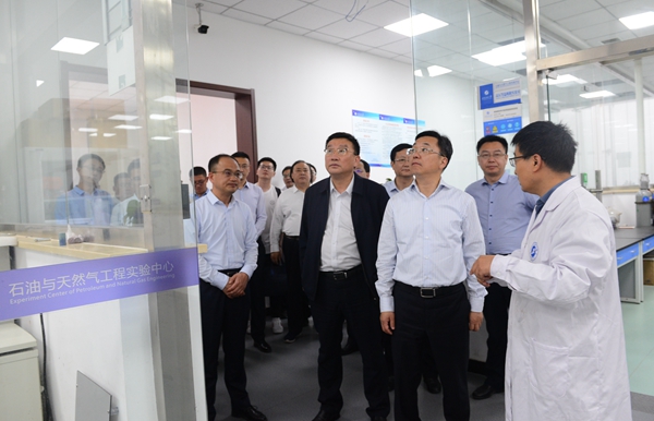 交流活动期间,盐城市和宝鸡石油机械有限责任公司的领导和来宾在学校有关部门负责人的陪同下,先后参观了我校油气钻井国家工程实验室分室、“西部低渗-特低渗油藏开发与治理”教育部工程研究中心、油气管网仿真实验室。