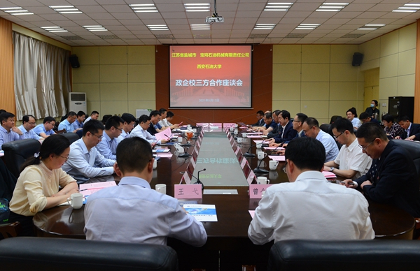 盐城市建湖县副县长王弋在交流中谈到,西安石油大学作为西北地区唯一一所以石油石化为特色的高水平大学,在石油石化行业有着丰厚的科研和技术沉淀,多年来为建湖县的建设和发展提供了强有力的支持。双方联合共建石油机械研究所,开展相关领域研究与合作已有近15年,他表示,建湖县政府一定在今后政企校三方合作中,做好石油机械研究所、下辖企业的监督和指导,助力三方发挥各自优势,进一步创新合作形式、加快校地优势资源共享,促进三方事业共同发展。