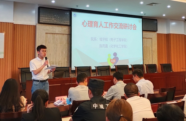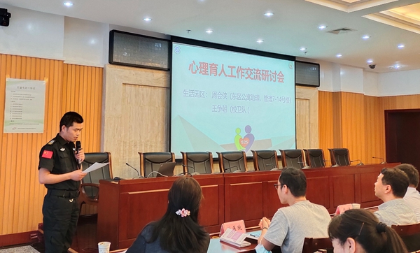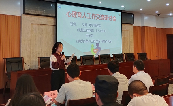随后,电子工程学院心理专干钱宇航老师、化学化工学院心理专干陈雨露老师分别介绍了本院心理辅导站的建设情况、一院一品的心理健康教育特色活动、个人工作的经验与体会,并提出了工作中的问题和困惑。机械工程学院土木1904班的心理委员艾曼•努尔德别克,地球科学与工程学院勘探1902班的心理委员吴怡乐同学分享了作为心理委员的挑战、经验、收获和成长。东区公寓助理周会侠同志、鄠邑校区校卫队队长王争朝同志、校医院赵利剑医生代表学生生活园区的管理者和服务者,从各自工作性质和特点,介绍了与学生生活中互动的案例和经验。学生代表马克思主义学院2019级研究生李婷,从自我关怀的角度讲述了个体如何应对压力,在良好校园心理氛围的感染下,促进心理健康。