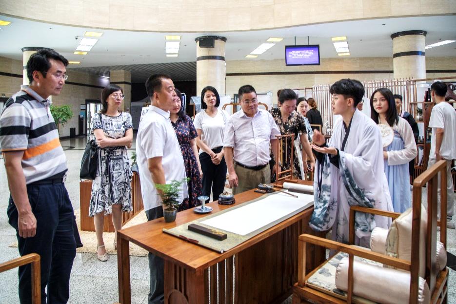 为进一步加强我校艺术设计类专业本科毕业生的设计实践能力与设计展示能力的提升,6月2日下午,由人文学院、图书馆主办的人文学院2021届学生毕业设计作品展开幕式在鄠邑校区图书馆举行,副校长程永清出席开幕式并致辞。党政办公室、教务处、图书馆相关负责人、人文学院党政领导以及160余名师生出席了开幕式,开幕式由人文学院院长李涛主持。