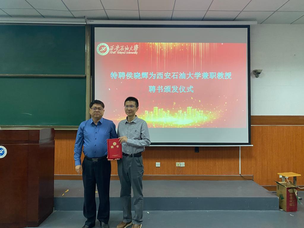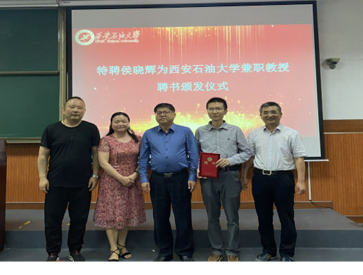 樊晓民总会计师简要介绍了西安石油大学和经济管理学院的发展现状。他谈到,侯晓辉教授能加入我校经济管理学院做兼职教授是对学校尤其是经济管理学院的积极支持,将大幅提升学校管理类学科建设水平,增强人才培养质量。樊晓民总会计师为侯晓辉教授颁发了兼职教授聘书。