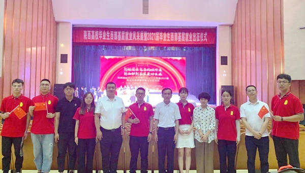 6月29日晚,由陕西省委教育工委、陕西省教育厅主办,陕西师范大学承办的陕西高校毕业生西部基层就业风采展示暨2021届毕业生西部基层就业出征仪式在陕西师范大学终南音乐厅举行。我校党委副书记张木带队,就业指导中心相关负责人、2021届西部基层就业毕业生代表参加出征仪式。