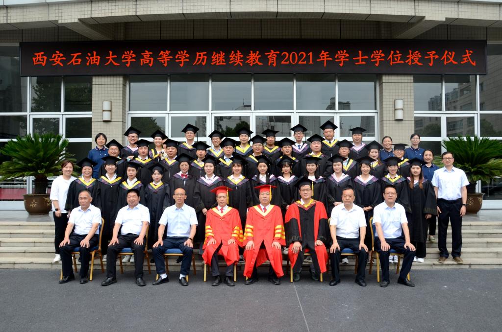 7月10日上午,我校高等学历继续教育2021年学士学位授予仪式在明德校区明德楼报告厅隆重举行。副校长杨战社,副校长、校学位评定委员会副主席陈军斌,校学位评定委员会委员、教务处处长张君涛,石油工程学院副院长赵金省教授出席学位授予仪式。继续教育学院党总支书记耿岭主持授位仪式。2021年获得学位及因疫情原因未举办授位仪式的2020年获得学位的共36名学生代表参加授位仪式。