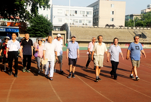离退休党总支书记李渊在开幕式上致辞,离退休处处长夏玮宣布健步走活动开始。考虑到天气炎热,老党员健步走活动因人而异,量力而行,自己设定健步走任务。尽管很多老同志年事已高,腿脚不是很灵活,但是大家精神抖擞,保持着社交距离,向着终点努力进发,心情愉悦地完成了当日的行走任务。