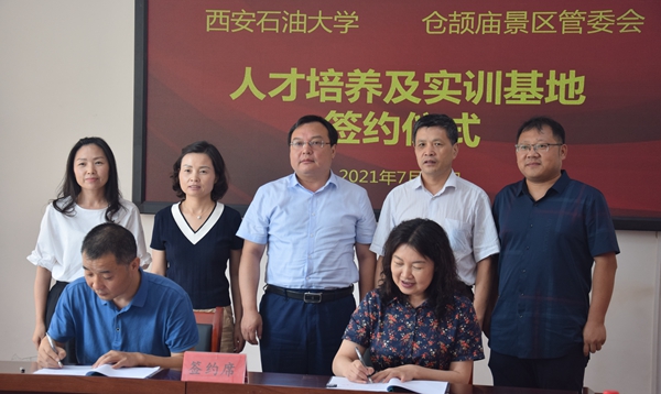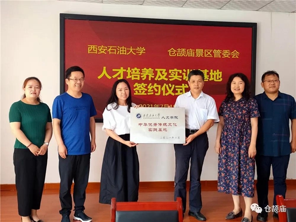 为深入贯彻习近平总书记在庆祝中国共产党成立100周年大会上的讲话精神,更好地发挥中华文明在“人类文明新形态”建设中的作用,提高我校人才培养的实践能力,7月19日,杨战社副校长带领人文学院师生先后赴白水县仓颉庙景区管委会和富平县文化馆,举行了西安石油大学人才培养及实训基地挂牌仪式。
