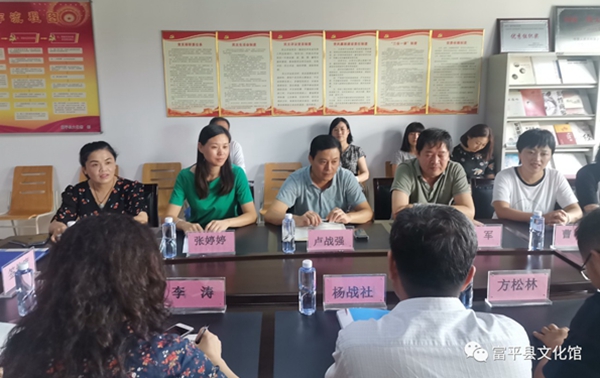在富平县文化馆,杨战社副校长一行与富平县文化和旅游局局长卢战强、副书记吴军、副局长文化馆馆长张婷婷等就红色文化的传承与传播、区域文化特色的凝练进行了座谈,然后一起参加了实践基地揭牌仪式。卢战强局长介绍了富平县文化和旅游产业的发展现状。他说,富平县的人文资源丰富、文化遗产众多,红色文化资源也十分丰富,希望能够与高校结对交流合作,发挥西安石油大学人才优势,就富平县的非物质文化传承创新深化合作。吴军副书记表示将以本次活动为契机,在文旅融合、人才培养、学生实习实践等方面继续与西安石油大学深度合作,进一步加强沟通交流。