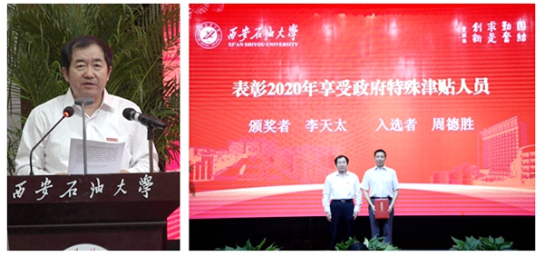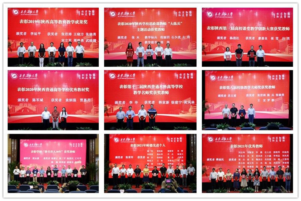 会上,校党委书记赛云秀宣读了《陕西省总工会关于表彰2020年陕西省五一劳动奖和陕西省工人先锋号的决定》,并为五一劳动奖章获得者周静老师颁奖;校长李天太宣读了《陕西省人力资源和社会保障厅关于我省 2020 年享受政府特殊津贴人员的通知》,并为入选者周德胜老师颁奖;校党委副书记、纪委书记、监察专员李延平宣读了《陕西省人民政府办公厅关于表彰2019年高等教育教学成果奖获奖项目的通报》,并为张君涛、王晓方、张骁勇、宋立军、周鸣勇、武晓朦6位老师领奖;校党委副书记张木宣读了《中共陕西省委教育工委陕西省教育厅关于表彰2020年陕西学校思政课教师“大练兵”主题活动获奖教师的决定》,并为程丽玥、石少虎、左玲、郑伟4位老师领奖;副校长杨战社宣读了《陕西省教育厅关于表彰陕西第三届高校课堂教学创新大赛获奖教师的决定》,并为廖嘉良、崔莹、吕英3位老师颁奖;副校长陈军斌宣读了《陕西省教育厅办公室关于公布2020年陕西普通高等学校优秀教材获奖名单的通知》,并为袁炳强、贾惠芹2位老师颁奖;副校长李华宣读了《陕西省教育厅关于表彰第十二届陕西普通本科高等学校教学名师奖获奖教师的通知》,并为韩家新、徐建宁、黄风林3位老师颁奖;副校长苏文甫宣读了《西安石油大学关于公布第八届校级教学名师奖评选结果的通知》,并为获奖老师颁奖;副校长程永清宣读了《西安石油大学关于表彰奖励“教书育人30年”教师的决定》,并为张群正、周三平、杨爱民、王可升、陈楠、钟泽波 、郝建东、高永利、黄风林、王岚等10位老师颁奖;副校长张荣军宣读了《中共西安石油大学委员会 西安石油大学关于表彰2021年师德建设先进集体和师德先进个人的决定》,并为获奖单位和先进个人代表颁奖;总会计师樊晓民宣读了《中共西安石油大学委员会 西安石油大学关于表彰2021年优秀教师 先进教育工作者的决定》,并为获奖教师代表颁奖。