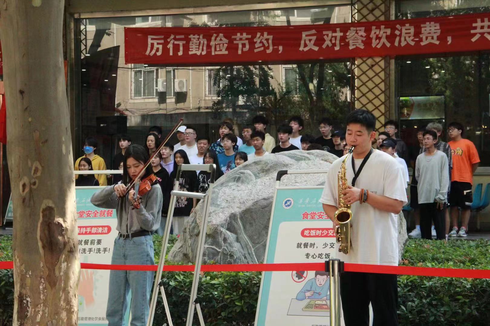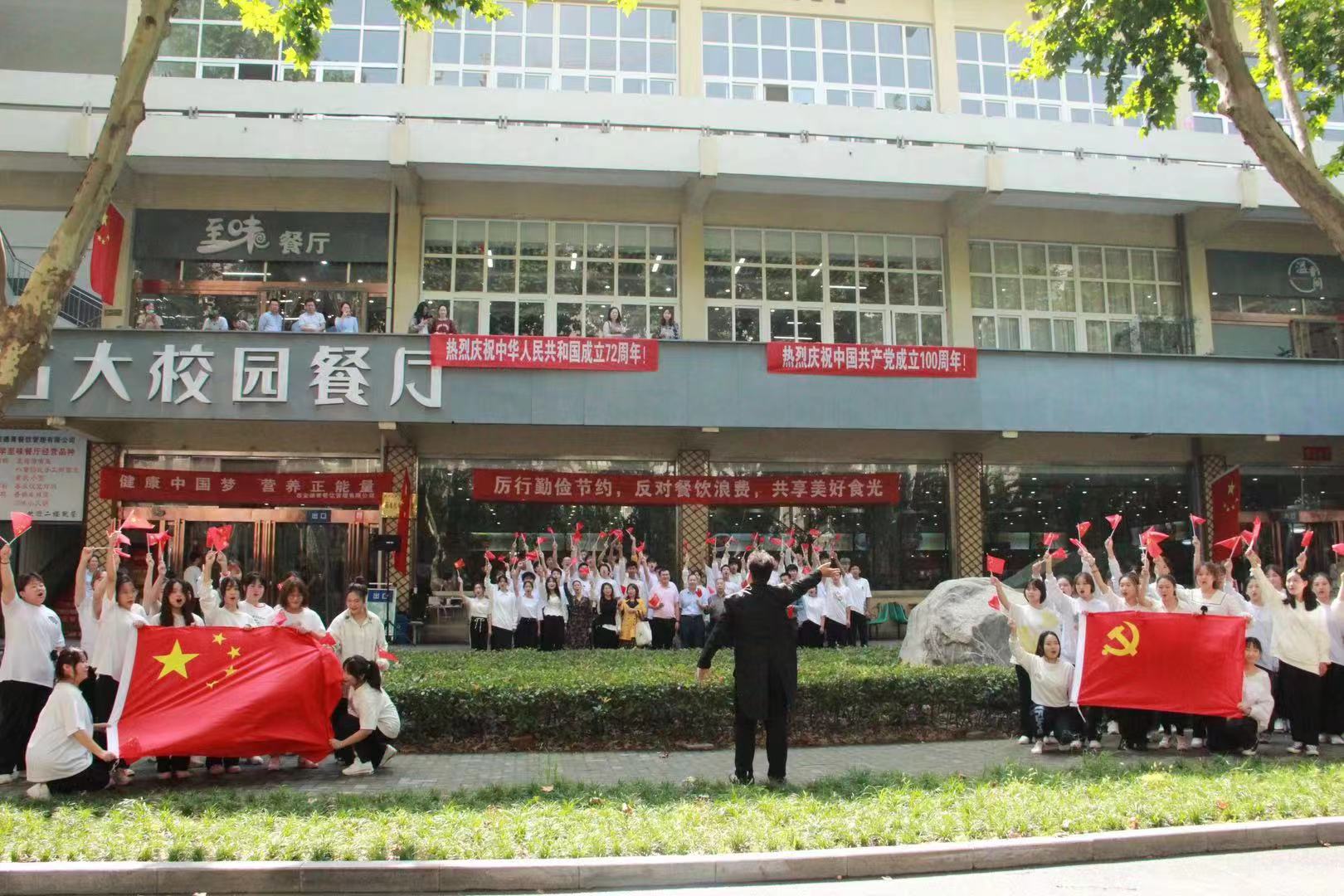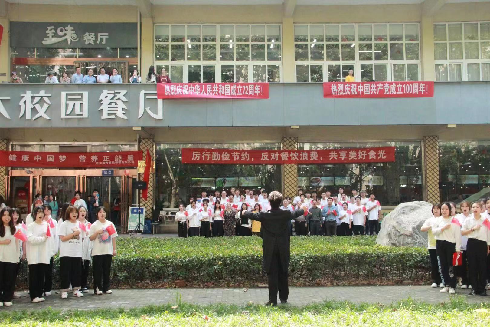 站在“两个一百年”奋斗目标的历史交汇点,为庆祝中华人民共和国72岁华诞和建党100周年,9月30日中午,我校音乐系组织师生在雁塔校区学生餐厅举办“红歌快闪”活动,吸引了众多师生观看,场面热烈。副校长陈军斌,纪委、规划处、石油工程学院、经济管理学院、音乐系主要负责人,以及80余名音乐系师生参加了本次“红歌快闪”活动。该活动由音乐系党总支策划,何云、毛楠、朱玥三位老师指导。音乐系已连续四年五次举办“红歌快闪”活动,唱响主旋律,展现师生良好的精神风貌。