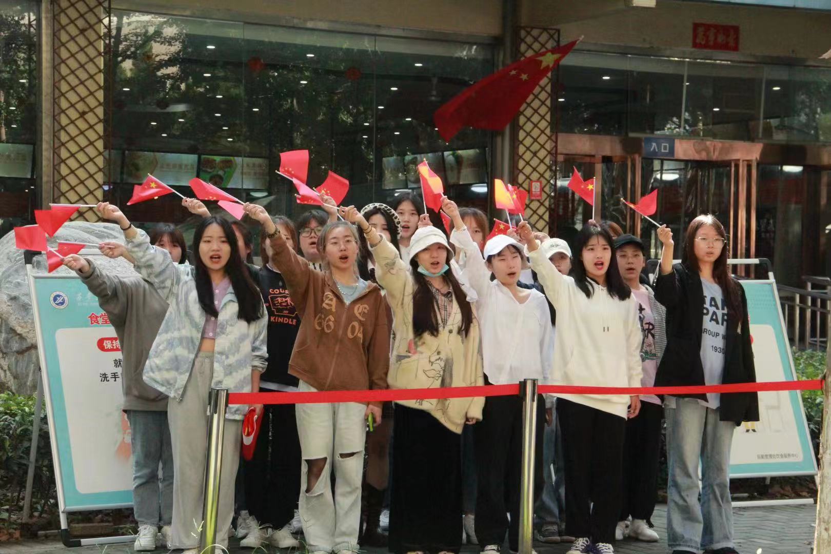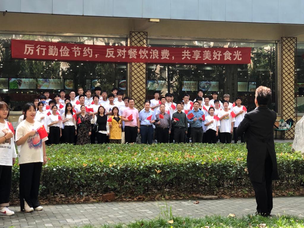 中午12点10分,“红歌快闪”活动正式开始,首先以小合唱和歌伴舞演绎了《我和我的祖国》。在优美的旋律中,手持红旗的师生们集体合唱了《红星闪闪》、《辉煌明天》两首歌曲,用歌声抒发心中爱国热忱。活动在师生们“我在西安石油大学祝祖国生日快乐!”的欢呼声中圆满结束。