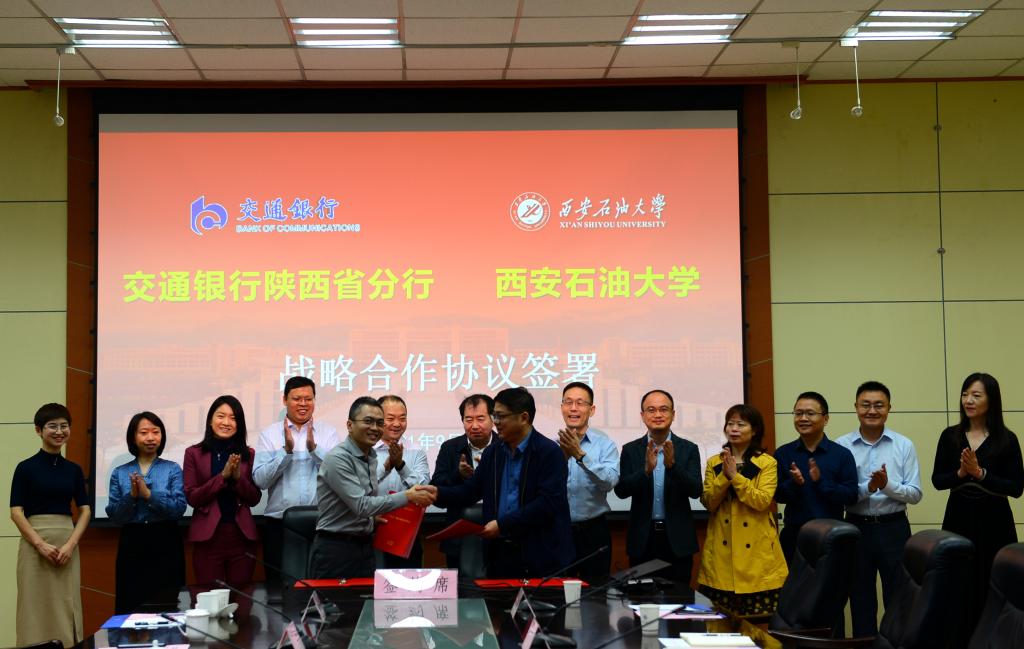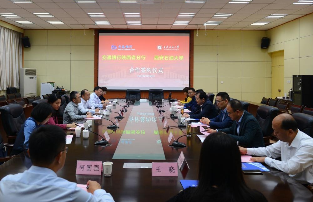 9月30日下午,我校与交通银行陕西省分行签署“十四五”期间战略合作协议,签约仪式在我校雁塔校区第一会议室举行。交通银行陕西省分行副行长蒋安祎一行六人,我校校长李天太、总会计师樊晓民出席签约仪式。签约仪式由校党委副书记雷西合主持。