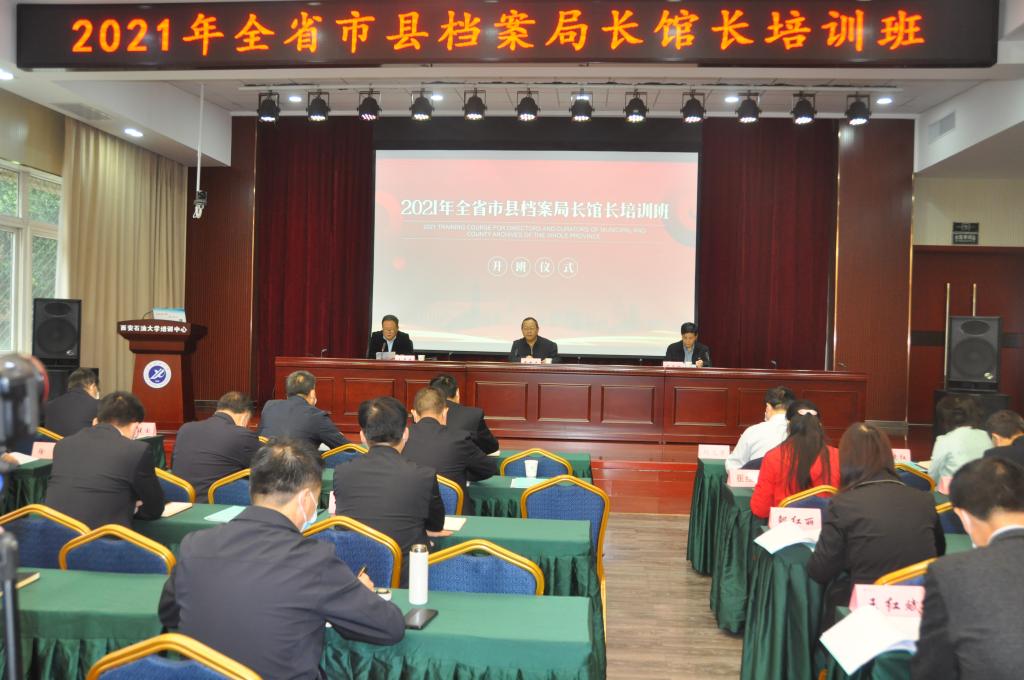 10月11日上午,2021年全省市县档案局长馆长培训班在我校培训中心顺利开班。省委副秘书长、省档案局馆长高新民,副校长杨战社出席开班仪式。仪式由陕西省档案局二级巡视员、人事处处长王展志主持。来自全省各市、县档案局馆长及省档案馆干部80余人将参加本次培训。