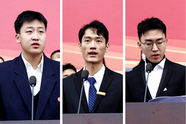 地球科学与工程学院物探2101班王振宇同学代表全体本科新生发言,石油工程学院2021级博士研究生赵一凡同学代表全体研究生新生发言,机械工程学院2019级硕士研究生李羿瑭同学代表全体在校学生发言。