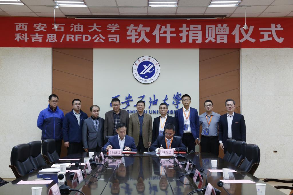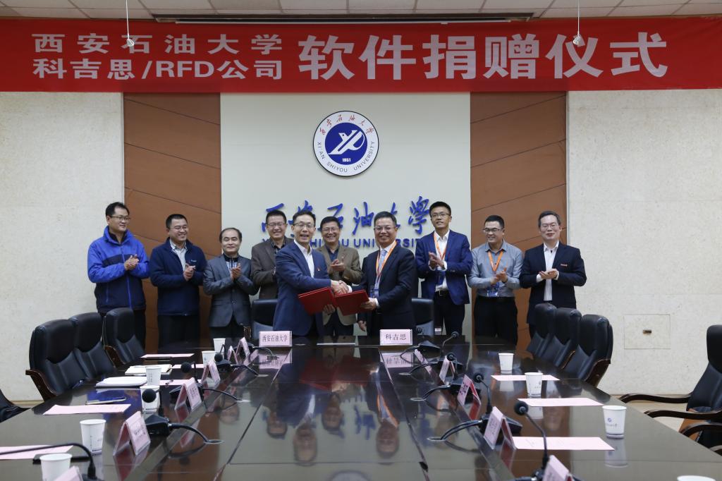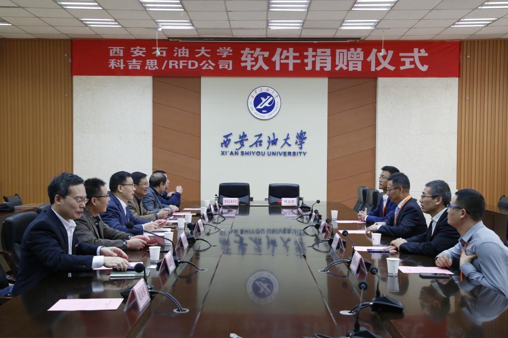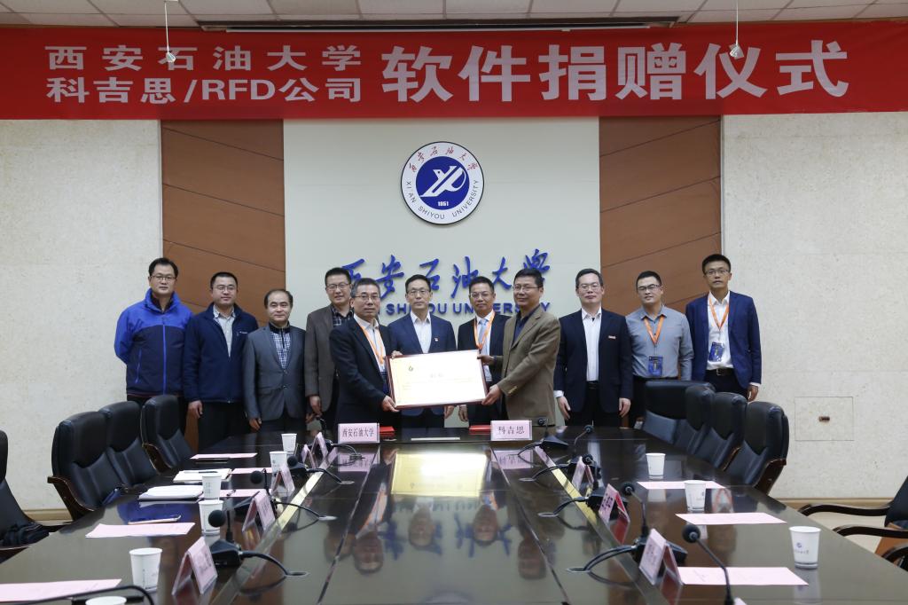10月18日下午,在学校建校70周年之际,科吉思石油技术咨询(北京)有限公司向我校捐赠软件仪式在雁塔校区第二会议室举行。我校党委副书记雷西合,科吉思石油技术咨询(北京)有限公司董事长王格平出席仪式。石油工程学院党委副书记张建高主持会议。