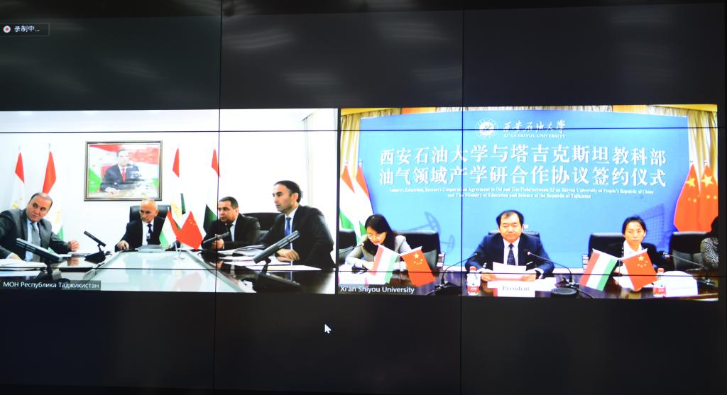 10月20日上午,我校在雁塔校区会议中心第二会议室举行了与塔吉克斯坦教科部油气领域产学研合作协议视频签约仪式。塔吉克斯坦共和国教科部部长赛大利、我校校长李天太出席会议。