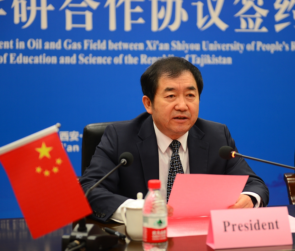 签约仪式上,我校校长李天太与塔吉克斯坦教科部部长赛大利(Muhammadyusuf Imomzoda Saidali)代表合作双方共同签署油气领域产学研合作协议。
