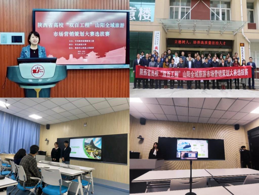 近日,我校三支学生团队参加了陕西省高校“双百工程”山阳全域旅游市场营销策划大赛总决赛。该项赛事,由中共陕西省委教育工委主办、西北政法大学承办、商洛市山阳县人民政府协办,旨在助力我省实现巩固拓展脱贫攻坚成果同乡村振兴有效衔接。